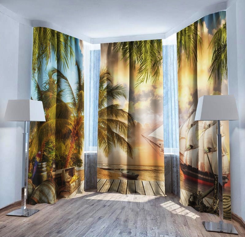Фотошторы "ПИРАТСКАЯ ПРИСТАНЬ" в таком дизайне прекрасно подходят для эркерных окон.