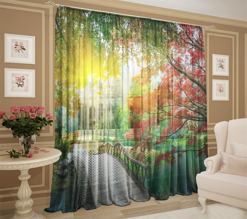 ФОТОТЮЛЬ "СОЛНЕЧНЫЙ ПАРК"  ИЗ ГАБАРДИНА  в спальную комнату