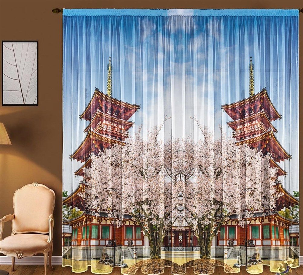 ФОТОТЮЛЬ "ЯПОНСКИЙ ПЕЙЗАЖ" ИЗ ШИФОНА в спальную комнату