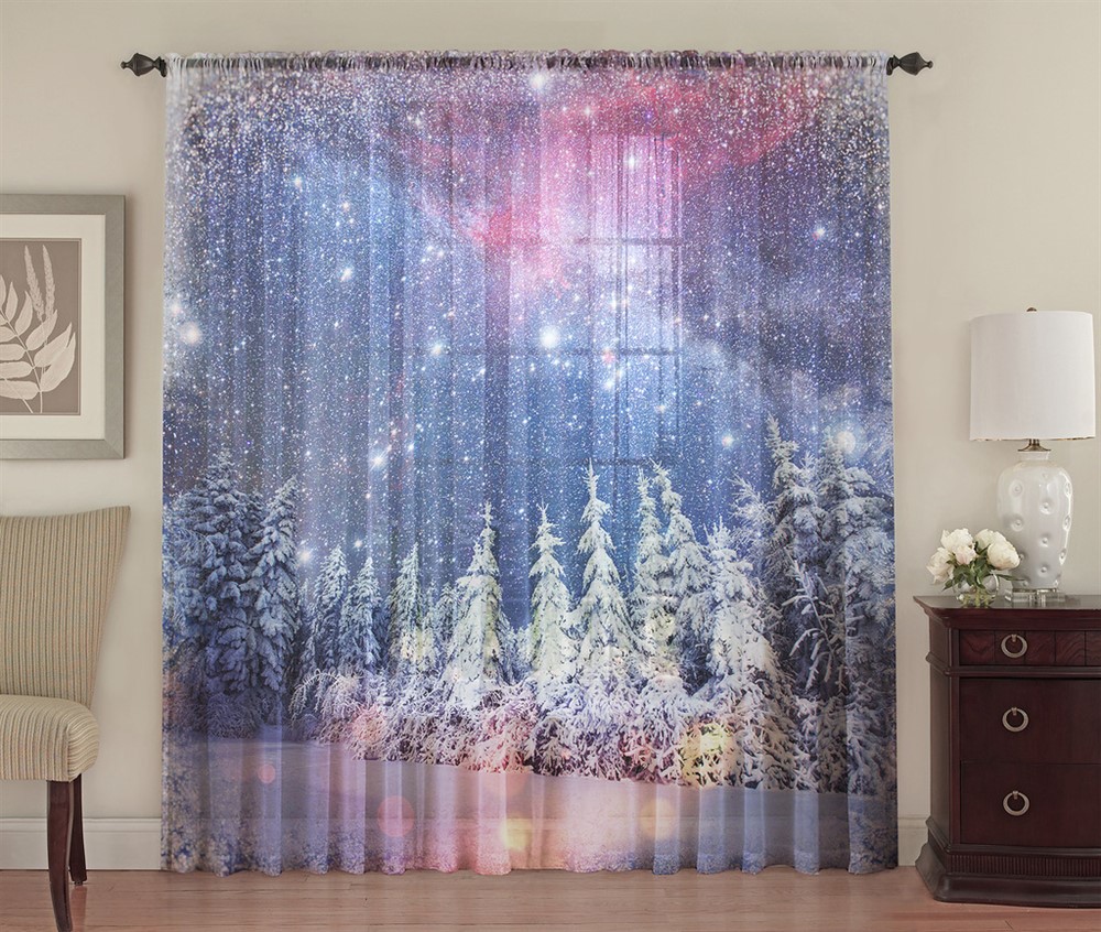 ФОТОТЮЛЬ "ЗАСНЕЖЕННЫЕ ЕЛИ" ИЗ ШИФОНА в спальную комнату